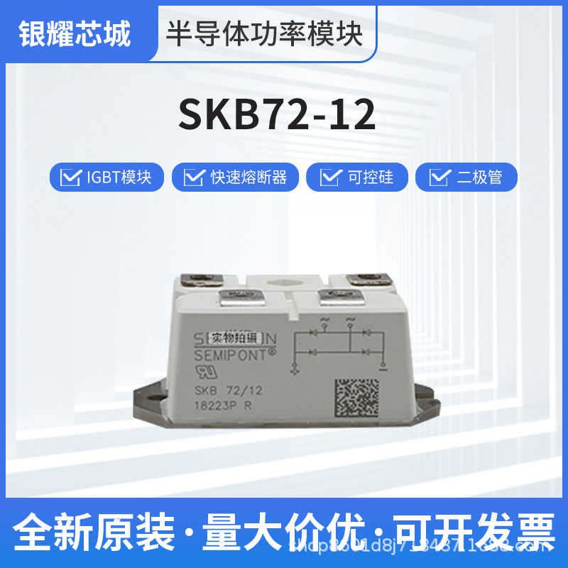 整流桥可控硅二极管模块SKB72-12晶闸管全新现货直发功率igbt模块-银耀芯城半导体(江苏)有限公司发布日期:2024-11-11
