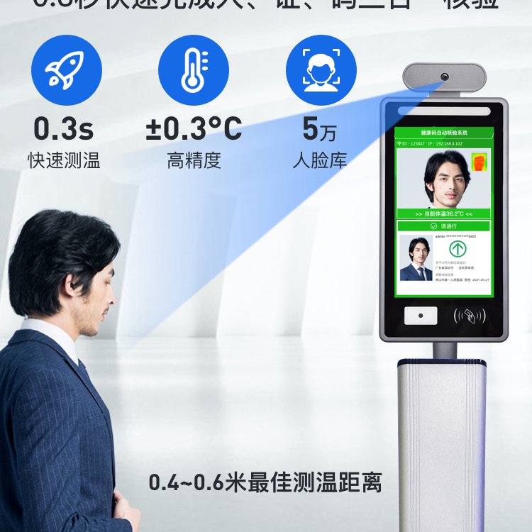 立式人脸识别门禁测温仪一体机防疫电子数字哨兵健康码随申码核验